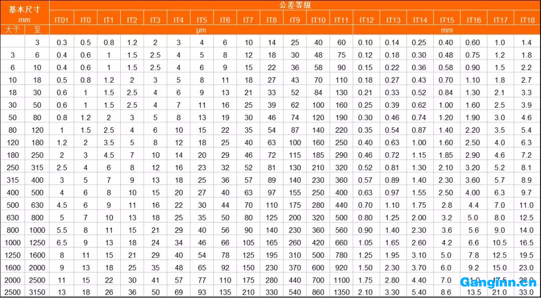 注:基礎(chǔ)規(guī)格低于毫米時(shí),無IT14至IT18